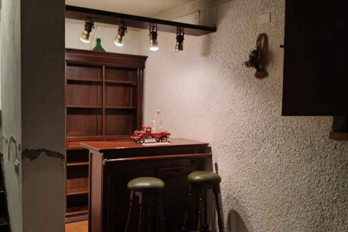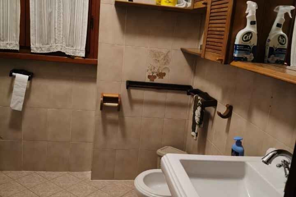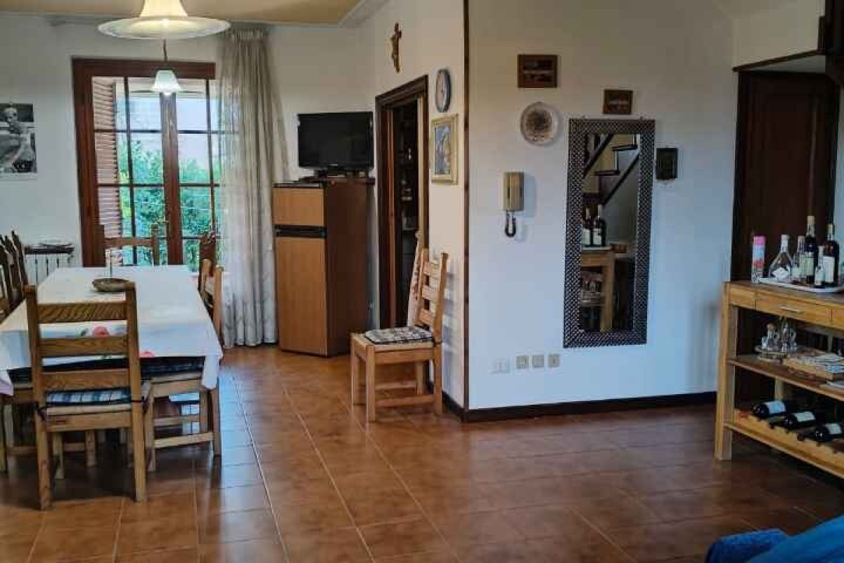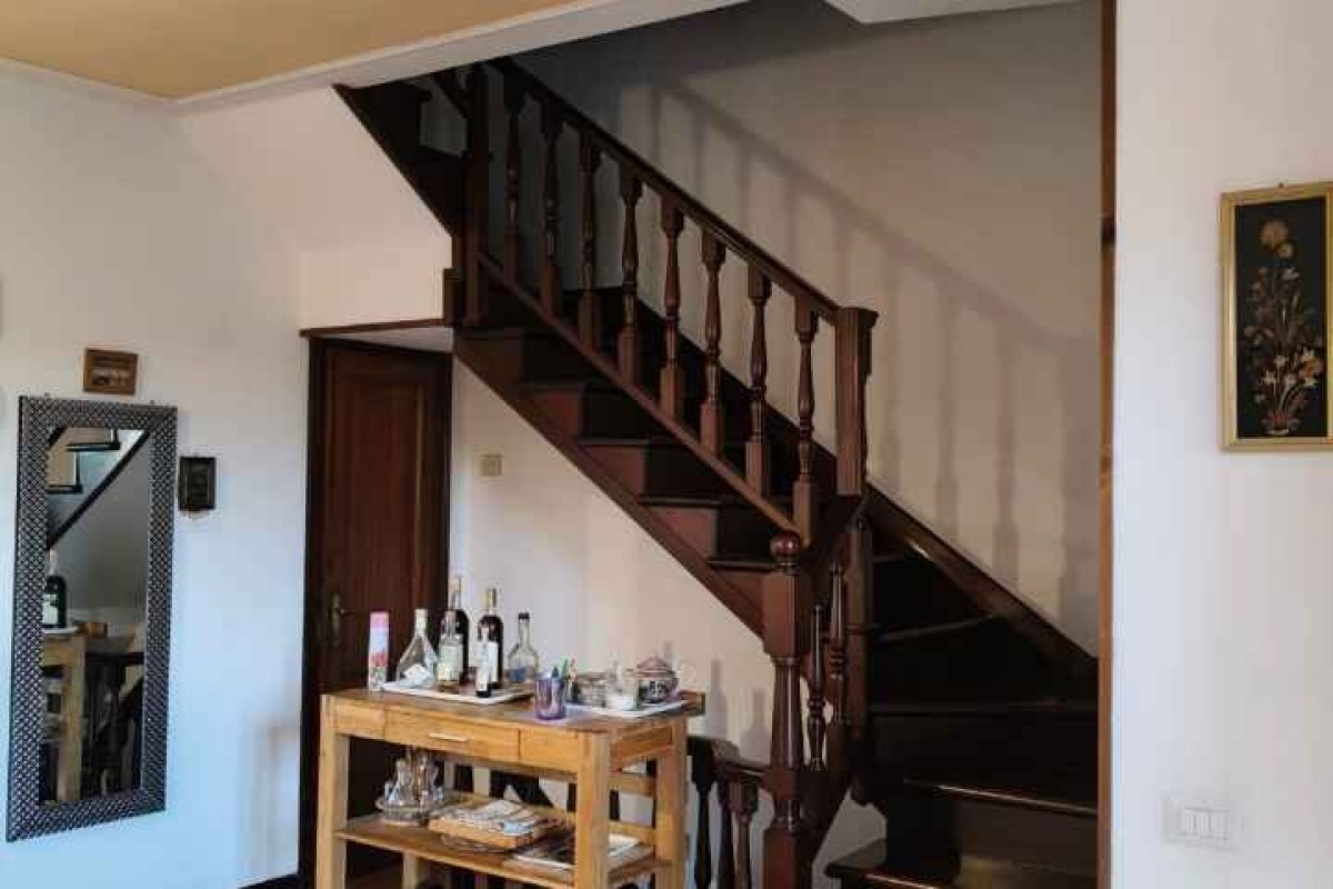 Pietrasanta, terraced house with garden, 800m from the beach, spread over two floors and a basement. The ground floor comprises an entrance hall, dining/living room, kitchenette, and shower. The first floor comprises two double bedrooms, a bathroom, and a storage room. The basement includes a large cellar and storage room. Garden on both sides.