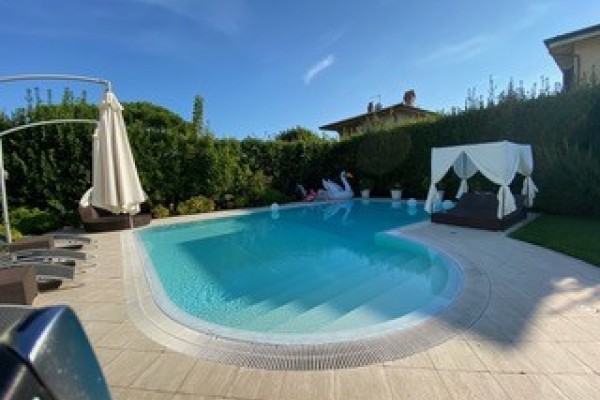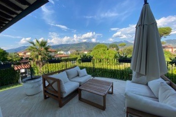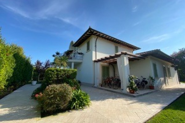 Forte dei marmi- vittoria apuana- villa di recente costruzione composta da ingresso, sala pranzo, cucina, soggiorno, camere 4 + una in teverna, bagni 5, ampio porticato, terrazze, taverna con cucina, sala, camera con bagno, zona fitness. Villa ben arredata ricca di marmi pregiati, dista 500 metri dalla spiaggia. Forte dei marmi-vittoria-apuana newly built villa comprises entrance hall, dining room, kitchen, living room, 4 bedrooms + a in teverna, 5 bathrooms, large porch, terraces, basement with kitchen, living room, bedroom with bath and fitness area. Well appointed villa full of. . .